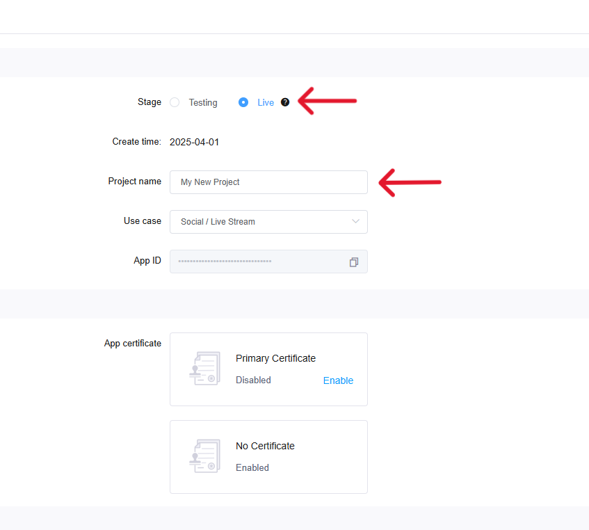 - Copy App ID and Add on Panel Admin > General Settings > Video Calls