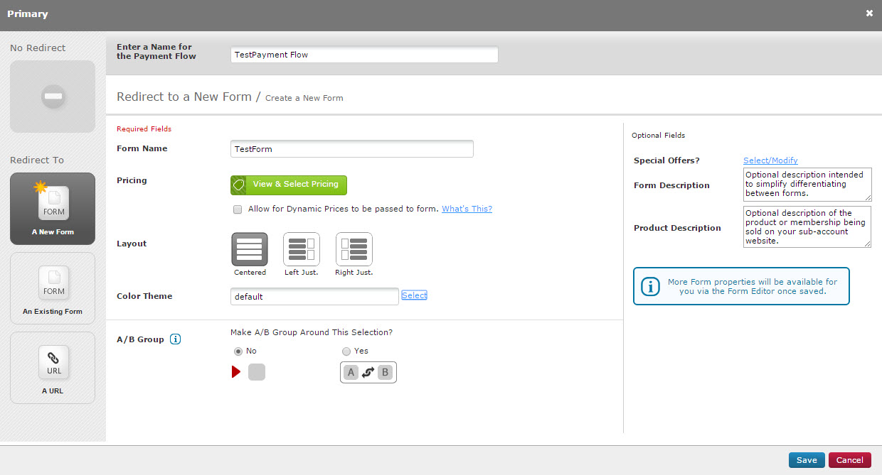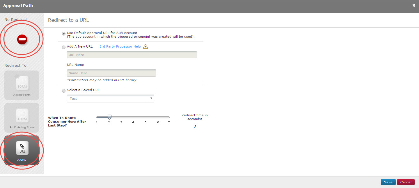 3. Approval URL. In the left menu, select A URL. Select Select a Saved URL and select the URL your created earlier (e.g. Payment Success).