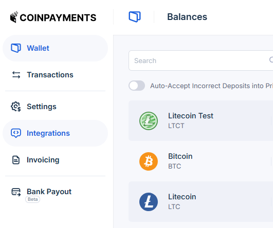 Panel Admin > Payment Settings > Coinpayments
